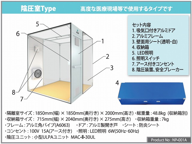 高度な医療現場において感染症対策用の隔離室として使用される場合は「陰圧ユニット」は必須となります。